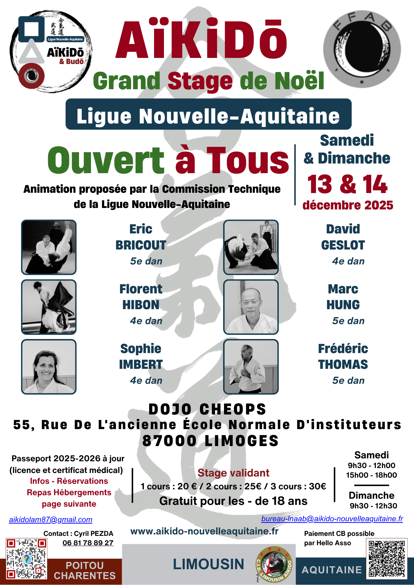 Un groupe WhatsApp, “Covoiturage -Stage de Noël LIMOGES – Aïkido” a été créé pour organiser des co-voiturages et mettre en relation les personnes souhaitant participer à ce stage de Noël de la Ligue à LIMOGES (13 et 14 décembre 2025).